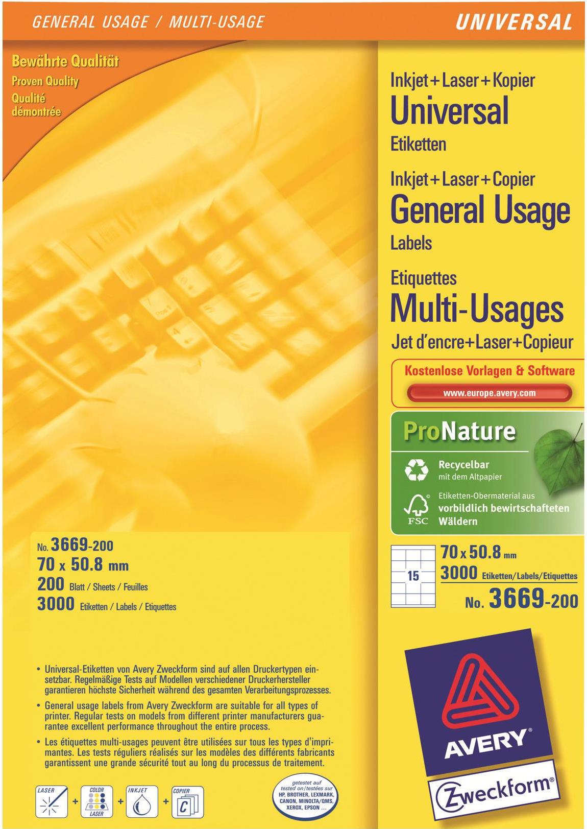 Avery Zweckform 3669 - Klebeetiketten - weiß - 50,8 x 70 mm - 3000 Etikett(en) (200 Bogen x 15) (3669-200)