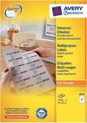 Die Universal-Etiketten von Avery Zweckform sind für alle gängigen Drucker und Kopierer geeignet und garantieren einen staufreien Druckerdurchlauf. Druckerdurchlauf für Laserdrucker getestet und bestätigt durch TÜV. Diese Aufkleber bieten Ihnen für jeden Bedarf und Anwendungsbereich die passende Lösung. Mit den Universal-Etiketten im Format 64 x 36 mm können Sie z.B. Eigentum kennzeichnen. Dank der kostenlosen Avery Zweckform Vorlagen und Software-Lösungen können Sie die Universal-Etiketten schnell und einfach gestalten und drucken!