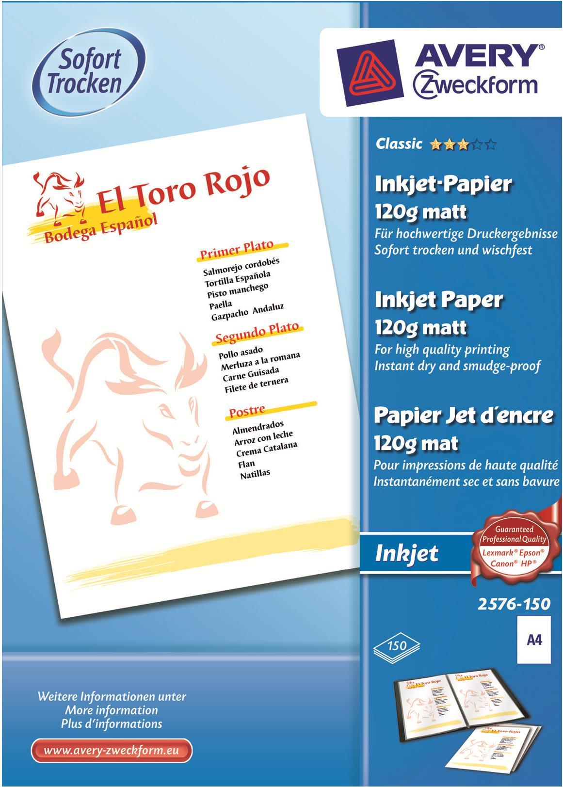 Avery Zweckform Classic Inkjet Paper 2576 - Normalpapier - Mattes Weiß - A4 (210 x 297 mm) - 120 g/m2 - 150 Blatt (2576-150)