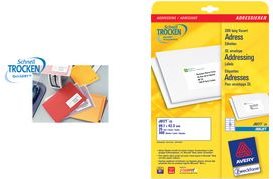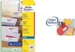 Adress-Etiketten von Avery Zweckform sind dank der Spezialbeschichtung für Inkjetdrucker sofort nach dem Bedrucken trocken. Die Adressaufkleber können sofort aufgeklebt werden. Nutzen Sie die Adressetiketten im Format 99,1 x 42,3 mm für DIN lang Umschläge. Dank der kostenlosen Avery Zweckform Vorlagen und Software-Lösungen können Sie die Adress-Etiketten schnell und einfach gestalten und drucken!