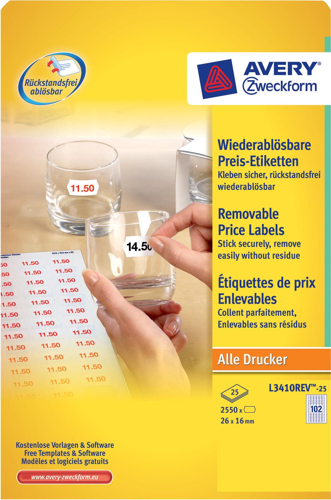 Avery Zweckform L3410REV - Preisschildetiketten - 16 x 26 mm - 2550 Etikett(en) (25 Bogen x 102) (L3410REV-25)