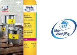Strapazierfähige, wetterfeste Folien-Etiketten von Avery Zweckform eignen sich überall da, wo Papier-Etiketten überfordert sind. Die Etiketten sich ideal für Beschriftungen, Markierungen und Schilder. Die Folienetiketten im Format 45,7 x 21,2 mm sind besonders strapazierfähig und haften auch unter erschwerten Bedingungen im Außenbereich. Dank der kostenlosen Avery Zweckform Vorlagen und Software-Lösungen können Sie die strapazierfähigen, wetterfesten Etiketten schnell und einfach gestalten und drucken!