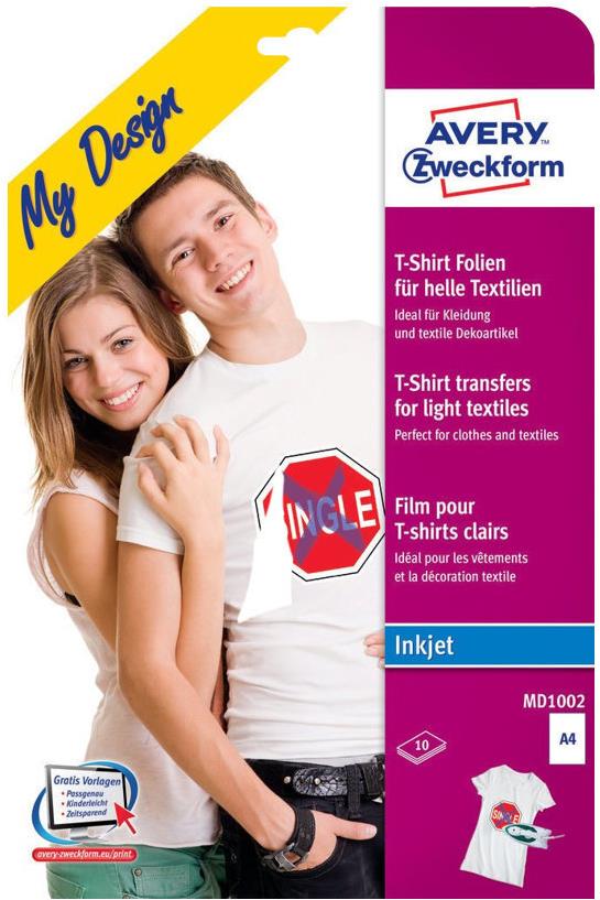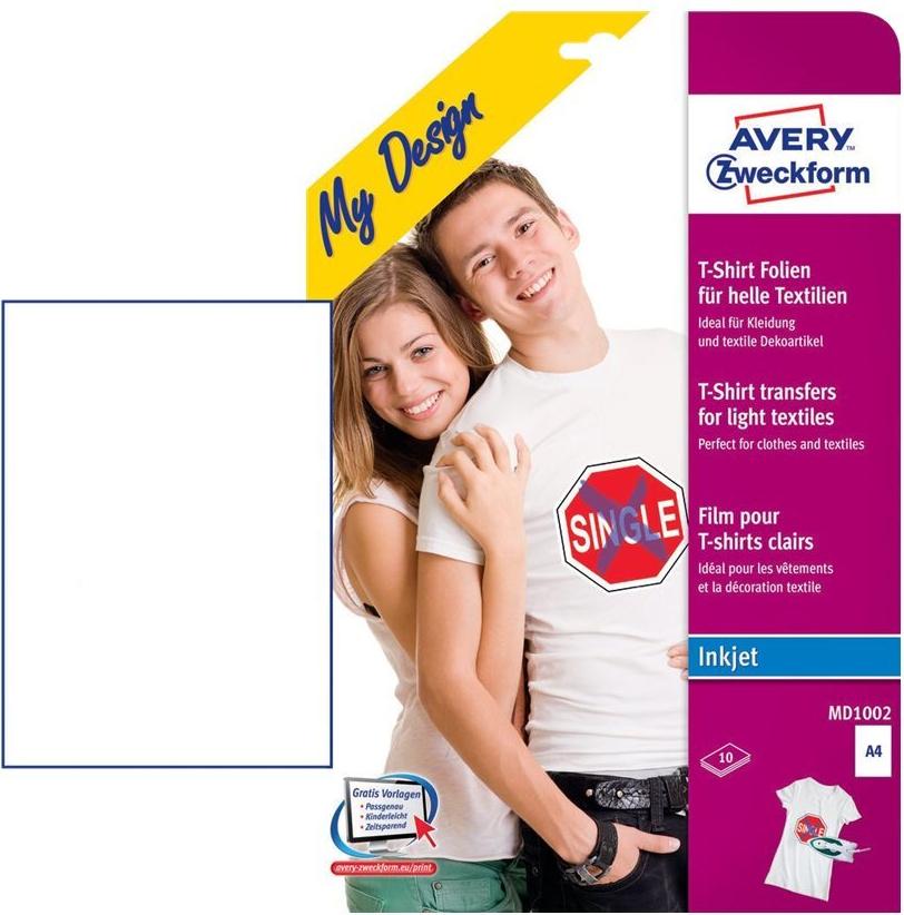 Avery Zweckform My Design Textilfolie für helle Textilien - Transferpapier zum Aufbügeln - A4 (210 x 297 mm) - 10 Blatt (MD1002)