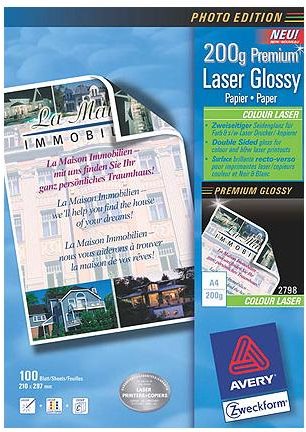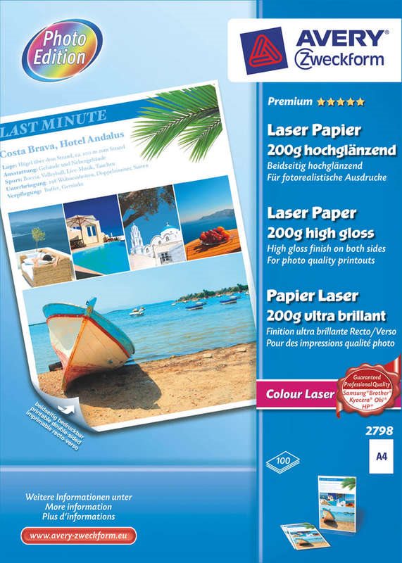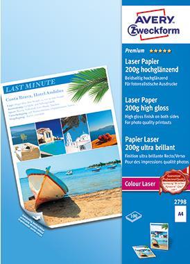 Avery Zweckform Premium Colour Laser Paper 2798 - Beidseitig beschichtetes Hochglanzpapier - weiß - A4 (210 x 297 mm) - 200 g/m2 - 100 Blatt (2798)