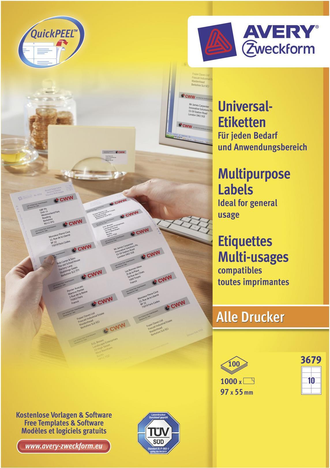 Avery Zweckform QuickPEEL - Mehrzwecketiketten - weiß - 97 x 55 mm - 1000 Etikett(en) (100 Bogen x 10) (3679)