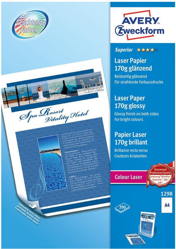 Avery Zweckform Superior Colour Laser Paper 1298 - Beidseitig beschichtetes Fotoglanzpapier - weiß - A4 (210 x 297 mm) - 170 g/m2 - 200 Blatt (1298)