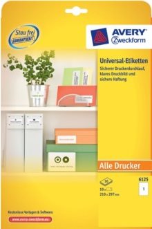 Avery Zweckform Universal - Etiketten - weiß - A4 (210 x 297 mm) - 10 Etikett(en) (10 Bogen x 10) - (6125)