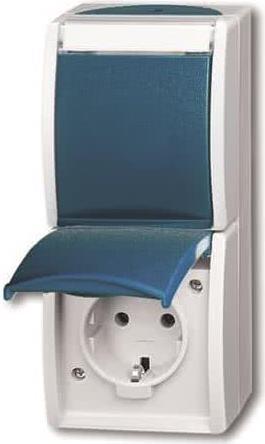 BJ - Ocean - Schuko Steckdose Klappdeckel Beschriftungsfeld 2-fach - AP *grau/blaugrün* (20-02EWN-53)