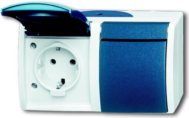 BJ - Ocean - Schuko Steckdose Klappdeckel 2-fach - AP *grau/blaugrün* (20/2EW-53)