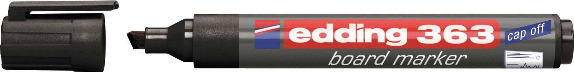Whiteboardmarker edding 363. Nachfüllbar. Geruchsarme Tinte auf Alkoholbasis. Kann einige Tage offen liegen bleiben, ohne einzutrocknen. Keilspitze, Spitze austauschbar. Kunststoffschaft. Kappe umsteckbar, Clip vorhanden. ...