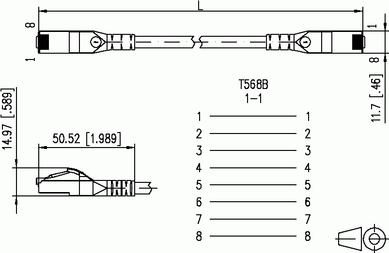 - zwei geschirmte RJ45-Stecker, Beschaltung 1 - 1