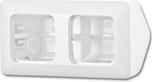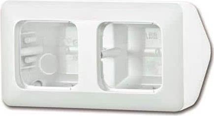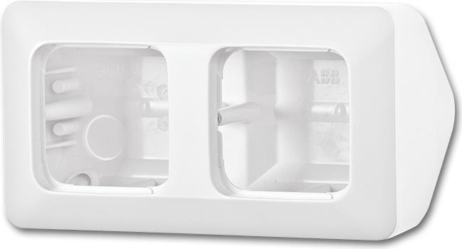 Bestehend aus Aufputz-Gehäuse für Eckmontage inkl. 2-fach Abdeckrahmen.