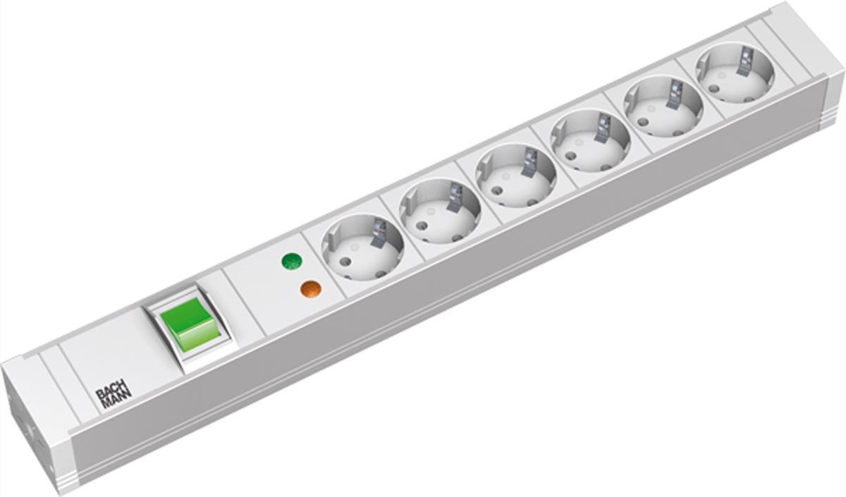 Bachmann - Verlängerungsschnur (Rack - einbaufähig) - Wechselstrom 230 V - 6 Ausgangsstecker - 1U - 48,3 cm (19") - 2,0m - Deutschland (333.605)