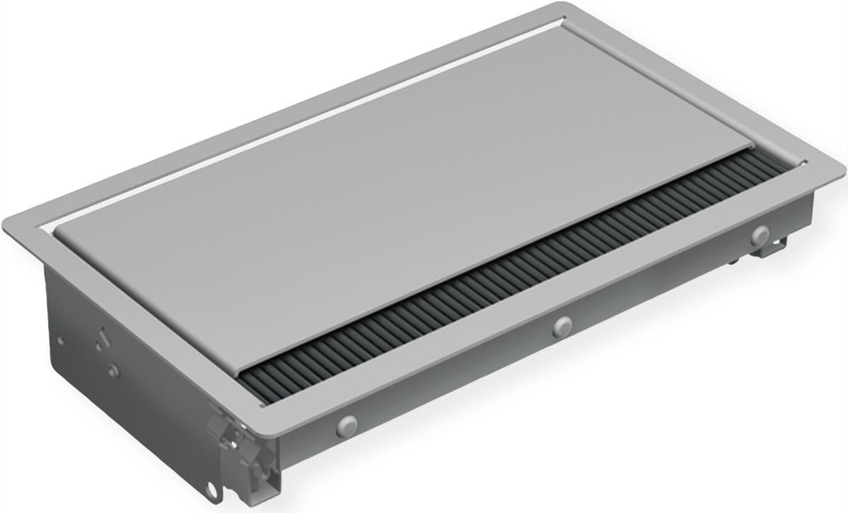 CONI ist in geschlossenem Zustand in die Tischoberfläche integriert. Werden Anschlüsse benötigt, öffnet man einfach den Deckel, steckt die gewünschten Stecker ein und macht den Deckel wieder zu. Dabei werden dank integriertem Bürsteneinsatz keine Kabel geklemmt. Das harmonische Erscheinungsbild eines „ebenen" Tisches bleibt gewahrt.