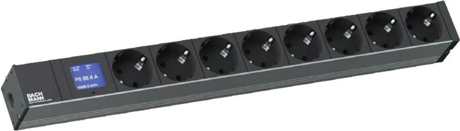 Bachmann BlueNet BN0500 - 8 x Schutzkontaktsteckdose - integrierte Leistungsmessung - 2,0 m H05VV-F 3G1,5 mm² - schwarz - mit Schutzkontakt-Winkelstecker (800.2054)