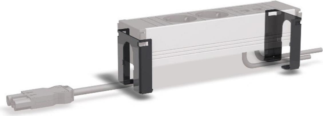 Zur Befestigung von Bachmann CONI Steckdoseneinheiten unabhängig vom Einbaurahmen, Einbau z. B. unterhalb der Tischplatte in eine Kabelwanne. Zur Befestigung werden handelsübliche SPAX-Schrauben benötigt. Der rückseitige Abgang und Biegeradien der Strom- und Datenanschlüsse werden berücksichtigt.