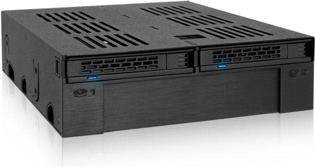 Falls Sie ein kompaktes Backplane-Modul mit vielfältigen Einsatzmöglichkeiten und Funktionalität suchen. Das ExpressCage MB322SP-B ist ein Backlane-Modul das zwei 2,5" SATA/SAS HDDs/SSDs (7mm-9,5mm) in einem 5,25" Einbauschacht aufnimmt und darüber hinaus Platz für eine 3,5" Festplatte oder eine andere Komponente im 3,5" Formfaktor bietet. Das einzigartige Design der ExpressCage Mini Trays erlaubt eine werkzeuglose, und damit einfachere, Installation von 2,5" SATA oder SAS HDDs/SSDs, als jemals zuvor. Das MB322SP-B verfügt über einen abnehmbaren Staubschutz der die Front verschließt, falls der 3,5" Einbauschacht nicht verwendet wird oder eine 3,5" Festplatte eingesetzt ist. Soft blaue LEDs in jedem 2,5" Schacht informieren Sie über den aktuellen Laufwerksstatus ohne Sie dabei zu blenden. Für zusätzliche Widerstandsfähigkeit sorgen besonders stabile Entriegelungshebel und eine massive Metalloberseite.