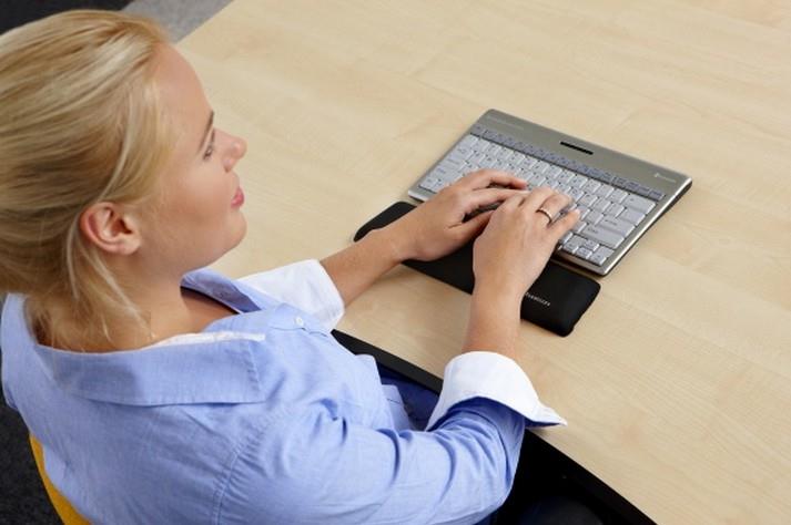 Die Trapezium Handgelenkstütze wurde entwickelt, um Ihre Handgelenke und Hände bei der Benutzung Ihrer Computertastatur zu unterstützen. Die Tastatur-Handgelenkstütze ist aus festem, dämpfendem Gel mit einer antibakteriellen Schicht hergestellt, die für optimale Hygiene sorgt. Die Trapezium-Handgelenkstütze ist eine gute Stütze für Ihre Handgelenke, wenn Sie stundenlang tippen und die Maus benutzen. Sie trägt zu einem gesünderen und komfortableren Arbeitsplatz bei.