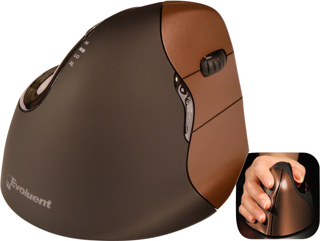 Die Evoluent4 Right Wireless Small Vertikalmaus ist eine patentierte ergonomische Maus, die Ihnen dabei hilft, gesund, bequem und produktiv an Ihrem Computer, Laptop oder mobilen Geräten zu arbeiten. Wie ihr Name schon sagt, ist diese kabellose Maus für Rechtshänder mit kleineren Händen geeignet. Die Evoluent4 Right Wireless Small verfügt über großartige Funktionen wie sechs programmierbare Tasten, eine direkt erreichbare DPI-Taste, mit der Sie die Zeigergeschwindigkeit auf einen der vier verschiedenen Werte (800-1300-1800-2600) einstellen können, ein beleuchtetes Evoluent-Logo, das sich ausschaltet, wenn sich das System im Energiesparmodus befindet, und eine Lippe, die den kleinen Finger unterstützt. Starten Sie Ihre Arbeit mit der Evoluent4 Right Wireless Small und stützen Sie Ihre Hand in einer aufrechten, neutralen Haltung, die ein Verdrehen des Unterarms verhindert. Mit der Evoluent4 Right Wireless Small können Sie komfortabler denn je an Ihrem Computer arbeiten.