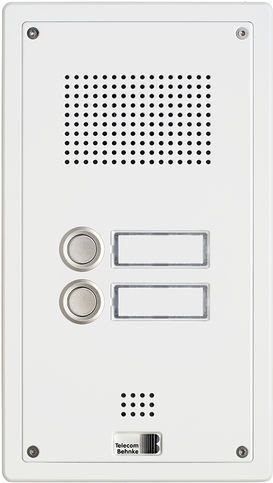 | Besonderheiten | 2 beleuchtete Beschriftungsfelder (mit optionalem Netzteil) Die Energieversorgung erfolgt über die a/b Leitung Frei programmierbare Direktruftasten Kompaktes Türtelefon in Metallbauweise Konfigurierbar per Ferne Unterputz Gehäuse |