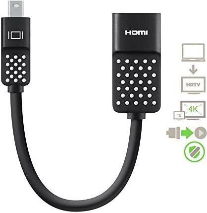 Belkin Mini-DisplayPort-/HDTV-AdapterWandelt Audio- und Videosignale so um, dass sie auf alle Displays HDMI®-fähiger Geräte übertragen werden könnenIdeal zum Anschluss von Laptops oder Tablets an HDTV-GeräteGeeignet zur Filmübertragung, für Präsentationen, Workstations und vieles mehrSeparates HDMI-Kabel ist erforderlichSchließen Sie Ihr Notebook oder Tablet an Ihr HDTV-Gerät anDer Mini-DisplayPort-/HDTV-Adapter von Belkin sorgt für eine ausgezeichnete Wiedergabe beim Audio- und Videostreaming von einem Notebook oder Tablet auf ein HDTV-Gerät. In Kombination mit einem HDMI-Kabel (separat erhältlich) kann er zur Wiedergabe von Filmen, zum Austausch von Fotos oder zur Erweiterung Ihrer Workstation mit einem zweiten Bildschirm verwendet werden.Stablie Ausführung verhindert VerschleissDer Adapter ist mit einer angespritzten Zugentlastung ausgestattet, die für Flexibilität an den Anschlüssen sorgt, sodass Verschleiß durch intensive Nutzung reduziert wird. An einem weißen Etikett erkennen Sie die Oberseite, sodass der Anschluss im Nu erfolgen kann.Überall sofort betriebsbereitMit einer Länge von nur 12,7 cm lässt sich der Adapter bequem transportieren und kann an HDTV-Geräten zu Hause und im Büro zum Einsatz kommen. Mit einem HDMI-Kabel (separat erhältlich) ist der Adapter immer sofort einsatzbereit und eignet sich für Präsentationen auf Geschäftsreisen.Ausstattung: Plug-and-Play zur reibungslosen Wiedergabe von Inhalten auf Ihrem Notebook und Tablet über Ihr HDTV-GerätAngespritzte Zugentlastung erleichtert den AnschlussUnterstützt 4K-AuflösungTechnische Daten: Anschluss-Typ: DisplayPort,HDMIAnschlusstyp A (bzw. Eingänge): Mini-DisplayPort SteckerAnschlusstyp B (bzw. Ausgänge): HDMI-BuchseAnzahl Anschluss A: 1 xAnzahl Anschluss B: 1 xAuflösung Video optisch: 3840 x 2160 PixelFarbe: SchwarzKabel-Anwendung: TV, MonitorKabel-Art (Kategorisierung): TV, Monitor AdapterKabel-Ausführung: AdapterKabel-Form: rundKabellänge: 0.12 mSignalfluss (Stecker A auf Stecker B): unidirektionalStecker-Ausführung: geradeHinweis: Dieser Adapter lässt sich an einen Mini-DisplayPort/Thunderbolt™-Anschluss anschließen, mit denen MacBooks und viele Ultrabooks und Tablets ausgestattet sind. Bitte überprüfen Sie die Kompatibilität Ihres Gerätes.• HDMI® ist eine eingetragene Marke der HDMI Licensing L.L.C.