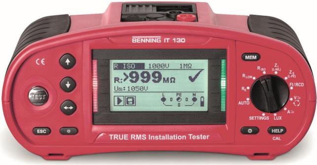 TRMS Installationsprüfgerät Benning IT 130Niederohmwiderstand, Durchgang, Isolationswiderstand, Leitungsimpedanz, SchleifenimpedanzPrüfung von FI/RCD-Schutzschalter Standard und verzögert (S), Typ AC, A, F, B, B+ TRUE RMS Spannung, Frequenz, Drehfeld, Erstfehler-Leckstrom im IT-NetzMesswertspeicher über 4 Ebenen (Objekt, Block, Sicherung, Messpunkt) für 1800 MessungenUpload von Anlagenstrukturen und Download von Messwerten Bidirektionale Schnittstellen (USB/ RS 232)Sicherheitstechnische Prüfungen an elektrischen Anlagen nach Errichtung, Änderung oder als regelmäßige Wiederholungsprüfung gemäß VDE 0100/ 0105 und IEC 60364 können mit dem BENNING IT 130 einfach und rationell durchgeführt werden. Darüber hinaus können die FI/ RCD-Schutzschalter, Standard und verzögert (S) der Typen AC, A, F, B, B+ mit Auto-Test, Berühungsspannung, Auslösezeit und Auslösestrom (Rampentest) geprüft werden.Ausstattung: Zur Prüfung elektrischer Anlagen gemäß DIN VDE 0100-600 und DIN VDE 0105-100, inkl. Prüfung von FI/RCD-Schutzschalter Typ B/B+Ausstattung: Beleuchtetes Grafikdisplay mit Hilfefunktion, AnschlussdiagrammMess¬funktionen über Drehschalter direkt anwähl¬barDrehfeldErstfehler-Leckstrom im IT-NetzMessergebnis mit Symbolik für be¬standen/ nicht bestandenMesswertspeicher über 4 Ebenen (Objekt, Block, Sicherung, Messpunkt)Integrierte EchtzeituhrUpload von Anlagenstrukturen, Download von Mess¬wertenBidirektionale USB-/ RS 232 Schnitt¬stelleGrüne/rote LED für Gut/Schlecht-An¬zeige am Prüfgerät/ Commander-PrüfspitzeCommander-Prüfspitze mit TEST/ SPEI¬CHER-Taste, LED MessstellenbeleuchtungSoftware für einfachen Messwertdownload, Protokollierung (Prüfbericht/ ZVEH-Prüfpro¬tokoll), Erstellung und Übertragung (Upload) von Anlagenstrukturen zum BENNING IT 130Online-SpannungswächterOptional: Er¬dungs-, Strom-, BeleuchtungsstärkemessungTechnische Daten: Anzeige: LC-Grafik-Dis¬playMessbereich Niederohm: 0,01 Ohm - 2 kOhmPrüfstrom: 200 mAMessbereich Isola¬tionswiderstand: 10 kOhm - 1 GOhmPrüfspan¬nung: 50/100/250/500/1000 VMessbereich Leitungs- (L-N/L), Schleifenimpedanz- (L-PE) Messung: 0,01 Ohm - 10 kOhmMessbereich Kurzschlussstrom: 0,01 A - 200 kAFI/RCD-Prüfung Typ AC/A/F, B/B+: Auslösezeit, Aus¬lösestrom (Rampe), Berührungsspannung, AutoprüfungMessbereich Spannung: 1 - 550 V AC TRMS/DCMessbereich Fre¬quenz: 0 - 500 HzMesswertspeicher: 1800 MessergebnisseSpannungsversorgung: 6 NiMH-Mignon-AkkusTechnische Daten: Gewicht: 1300 gProduktabmessung, Breite: 260 mmProduktabmessung, Höhe: 190 mmProduktabmessung, Länge: 280 mmSpannungs-Versorgung: 6 NiMH-Akkus (AA)Weitere technische Daten: Messbereich Niederohm: 0,01 Ohm - 2 kOhmPrüfstrom: 200 mAMessbereich Isola¬tionswiderstand: 10 kOhm - 1 GOhmPrüfspan¬nung: 50/100/250/500/1000 VMessbereich Leitungs- (L-N/L), Schleifenimpedanz- (L-PE) Messung: 0,01 Ohm - 10 kOhmMessbereich Kurzschlussstrom: 0,01 A - 200 kAFI/RCD-Prüfung Typ AC/A/F, B/B+: Auslösezeit, Aus¬lösestrom (Rampe), Berührungsspannung, AutoprüfungMessbereich Spannung: 1 - 550 V AC TRMS/DCMessbereich Fre¬quenz: 0 - 500 HzMesswertspeicher: 1800 MessergebnisseLieferumfang: Tasche,PC-Software,USB/RS 232-Kabel,Schaltbare Commander-Prüfspitze,Prüfkabel mit Schutzkontaktstecker,Universalprüfkabel,3 x Prüfspitzen/Krokodilklemmen ,Ladegerät mit Akkus,Bedienungsanleitung