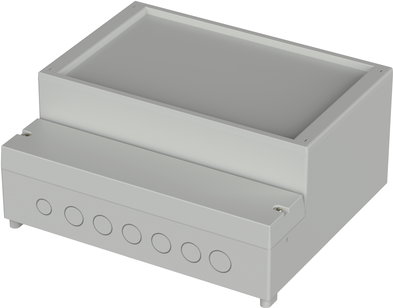 Das Gehäuse mit eingespritzten Nuten für den Karteneinschub senkrecht und waagerecht, Montagenocken und im Klemmraum Anschraubpunkte für Tragschienen. Aufhängung für Wandmontage ...