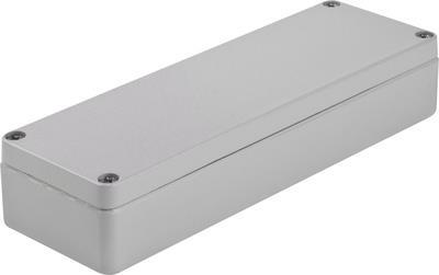 Aluminium-GehäuseGehäuse mit eingeschraubter Deckeldichtung und unverlierbaren Schrauben.Technische Daten: Farbe: Silber-Grau (RAL 7001)Gehäuseart (Kategorisierung): Universal-GehäuseInhalt: 1 St.Material (LOV): AluminiumProduktabmessung, Breite: 64 mmProduktabmessung, Höhe: 34.5 mmProduktabmessung, Länge: 185.5 mmSchutzart: IP66Typ (Hersteller-Typ): A 106Lieferumfang: Lieferung ohne Klemmblock.Hinweis: Auch für Wandmontage geeignet.