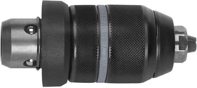 Das Schnellspannbohrfutter mit Adapter ist ein Bosch Systembohrfutter, das sich ohne zusätzliches Werkzeug anbringen und abnehmen lässt. Es spannt Bohrer (Durchmesser 1,5 bis 13 mm) mit minimalem Aufwand ein und erfordert keinen Schlüssel. Der Adapter ist mit Bosch Bohrhämmern kompatibel.