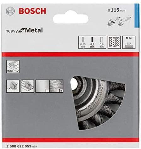 Scheibenbürste, 115 mm, 0,5 mm, 12500 U/ min, 12 mm, M14115 mm, 0,5 mm, 12500 U/ min, 12 mm, 14Scheibenbürste – gezopfter Draht. Optimal geeignet für das Reinigen von Schweißnähten. Geeignet für schwere Reinigungsarbeiten bei hohen Umfangsgeschwindigkeiten auf kleineren Metallflächen, in Rillen oder an Kanten, wie Entfernen von starkem Rost, Entlacken, Entschlacken, Entgraten, Entzundern. Passend zu allen Winkelschleifern mit M 14 Gewinde. 115 mm, 0,5 mm, 12 mm, M14.Technische Daten: Bürsten-Art: StahldrahtBürsten-Maße: Ø 115 mmInhalt: 1 St.Produktabmessung, Breite: 12 mm