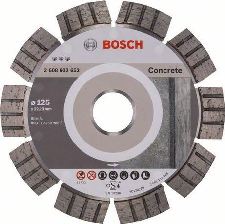 Bosch Accessories 2608602652 Diamanttrennscheibe Durchmesser 125 mm Innen-Ø 22.23 mm 1 St.Diamanttrennscheibe Best for Concrete, 125 x 22,23 x 2,2 x 12 mmDiamond TechnologyDie Diamanttrennscheibe Best for Concrete für schnelle Sc