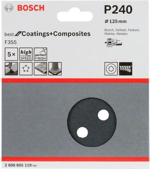 Bosch Exzenterschleifpapier mit Klett, gelocht Körnung 240 (Ø) 125 mm Best for Stone 2608605119 5 St. (2608605119)