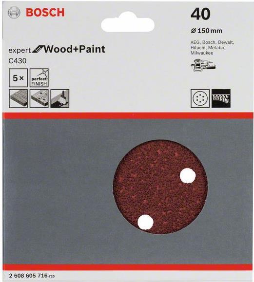 Bosch Exzenterschleifpapier mit Klett, gelocht Körnung 40 (Ø) 150 mm Expert for Wood 2608605716 5 St. (2608605716)