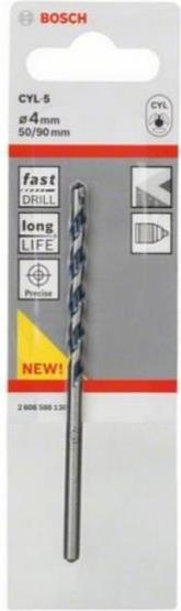 Bosch Accessories CYL-5 2608588138 Hartmetall Beton-Spiralbohrer 4 mm Gesamtlänge 90 mm Zylinderschaft 1 St.Betonbohrer CYL-5, Blue Granite, 4 x 50 x 90 mmDer CYL-5-Bohrer garantiert höchste Lebensdauer beim Bohren von Beton und Stein. Di