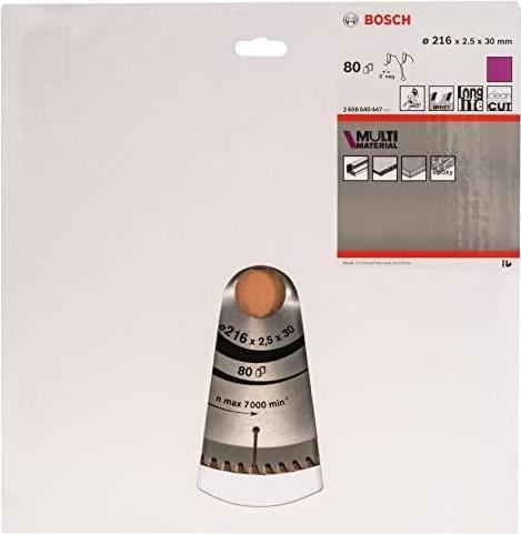 Das Multi Material Kreissägeblatt macht starke Schnitte in viele Materialien. Die hochqualitativen präzisionsgeschliffenen Hartmetallzähne machen das Blatt robust genug für Schneiden verschiedener Materialien, während das Stammblatt aus formstabilem SK5 gehärtetem Stahl (> 40 HRC) Genauigkeit sicherstellt. Die Körper- und Dehnungsschlitze des Blatts verringern Schwingungen während des Gebrauchs, wirken geräuschdämpfend und reduzieren die Hitzeentwicklung. Verwenden Sie dieses Sägeblatt für Aluminium, Nichteisenmetalle, Kunststoff, Epoxidharz und Holz. Die HLTCG-Zähne (High-Low Triple Chip Ground) machen das Multi Material Kreissägeblatt robust genug für Arbeiten mit abrasiven Materialien.