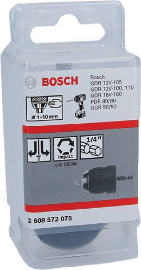 Schnellspannbohrfutter bis 10 mm, 1 bis 10 mm, 1/4" bis 6k Bosch Accessories 2608572075 N/A