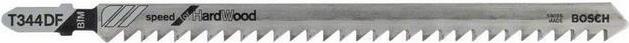 Das T 344 DF Speed for Hard Wood Stichsägeblatt macht schnelle gerade Schnitte in Holz. Die scharfgeschliffenen Zähne sind geschränkt, wodurch schnelle Schnitte ermöglicht werden. Die Zahnleiste aus gehärtetem HSS (Hochgeschwindigkeitsstahl) und BIM (Bimetall) ist mit hochelastischem Kohlenstoffstahl verstärkt, wodurch das Blatt zum Schneiden von harten Materialien, wie Hartholz und abrasiven Holzwerkstoffen, geeignet ist. Die große Zahnteilung (4 mm) und große Länge (152 mm) dieses Produkts ermöglichen Schnitte in Massivholzmaterialien mit einer Dicke bis zu 100 mm.
