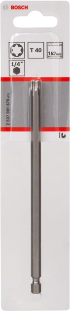 Bosch Schrauberbit extra-hart - 1 Stück(e) - Torx - T40 - Stahl - 152 mm - 25,4 / 4 mm (1 / 10,20cm (4")) (2607001676)