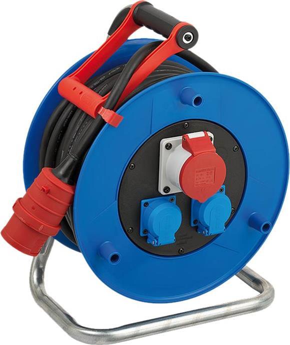 - Für den Baustelleneinsatz und den Einsatz im Freien, IP 44. - Gemäß EN 61316. - Trommelkörper aus Spezialkunststoff auf verzinktem Tragegestell. - Ergonomischer Handgriff mit Achse für perfekte Kabelführung beim Auf- und Abrollen. - RN-Kabel ist zugelassen für erschwerte Baubedingungen nach VDE 0100 Teil 704. - CEE-Stecker 400 V/16 A, - 1 CEE-Steckdose 400 V/16 A, - 2 spritzwassergeschützte Schutzkontakt-Steckdosen 230 V. - Schutzkontakt-Steckdosen auf getrennten Phasen verteilt. - Mit 3-poliger Sicherheitsabschaltung und Überhitzungsschutz. - Kabellänge: 30 m - Kabelbezeichnung: H07RN-F 5G2,5 - Kabelqualität: Gummi-Neopren - Kabelfarbe: Schwarz - Trommel-Ø: 320 mm