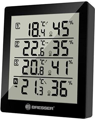 Das Temeo Hygro Quadro Thermo-/Hygrometer bietet die Möglichkeit an 4 unterschiedlichen Messpunkten in und um das Haus Temperatur und Luftfeuchtigkeit zu messen.