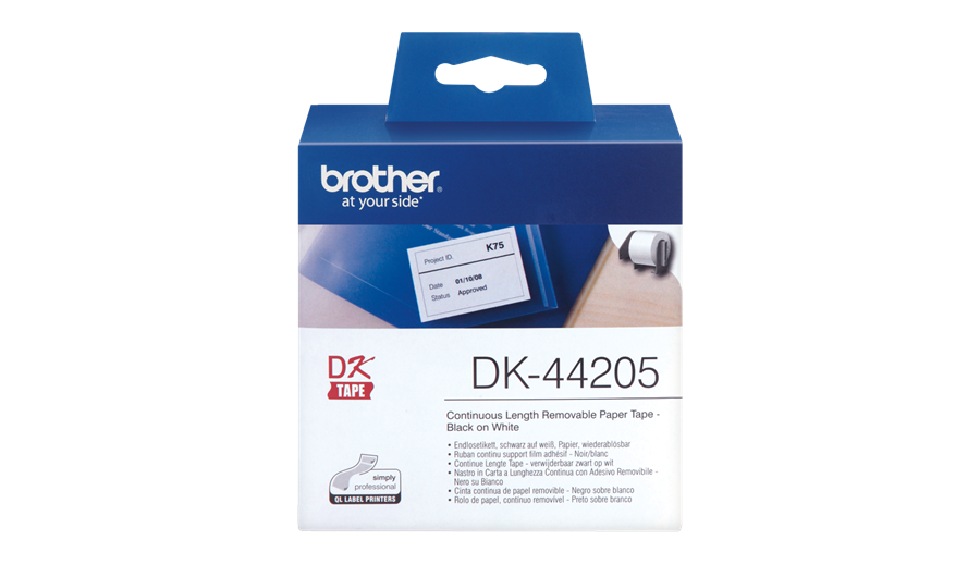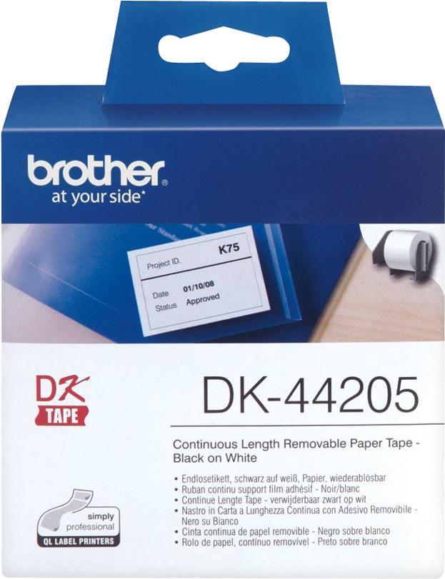 Mit der Original Brother DK-44205 Endlosetikettenrolle mit schwarzer Schrift auf weißem Hintergrund können Sie perfekt lesbare Papieretiketten erstellen, die dank ihres starken Kontrasts direkt ins Auge fallen. Da Sie die Länge der Etiketten selbst bestimmen, können Sie mit der DK-44205 Endlosetikettenrolle hochwertige Etiketten in verschiedenen Größen und Formen drucken. Die vielseitigen, selbstklebenden Papieretiketten lassen sich dabei problemlos wieder entfernen und eignen sich daher besonders gut für Gegenstände, die nur vorübergehend beschriftet werden sollen.