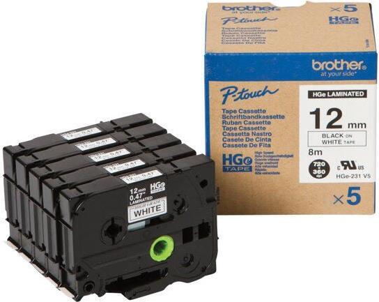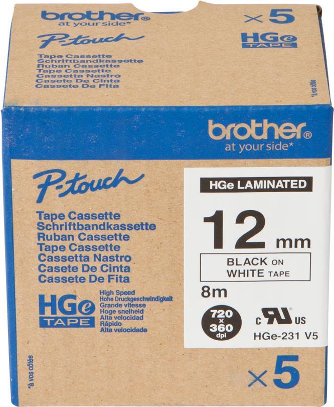 Brother HGE231V5 - Laminiertes Band - Schwarz auf Weiß - Rolle (1,2 cm x 8 m) - 5 Rolle(n) - für P-Touch PT-9500pc, PT-9700PC, PT-9800PCN (HGE231V5)