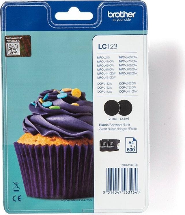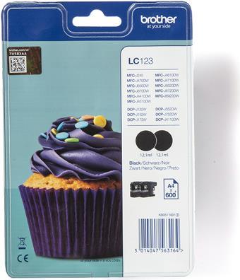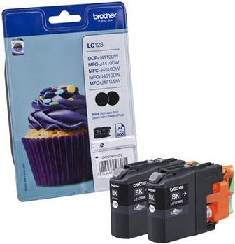 Brother LC123BK - 2er-Pack - Hohe Ergiebigkeit - Schwarz - Original - Blister mit akustischem/elektromagnetischem Alarm - Tintenpatrone - für DCP J100, J105, J132, J152, J552, J752; MFC J245, J470, J650, J6520, J6720, J6920, J870 (LC123BKBP2DR)