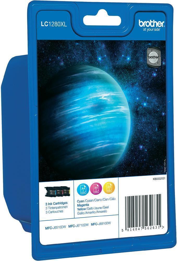 Brother LC1280XL Rainbow-Pack - Druckerpatrone - 1 x Gelb, Cyan, Magenta - 1200 Seiten - Blister mit akustischem/elektromagnetischem Alarm - für MFC J5910DW, J6510DW, J6710DW, J6910DW (LC1280XLRBWBPDR)