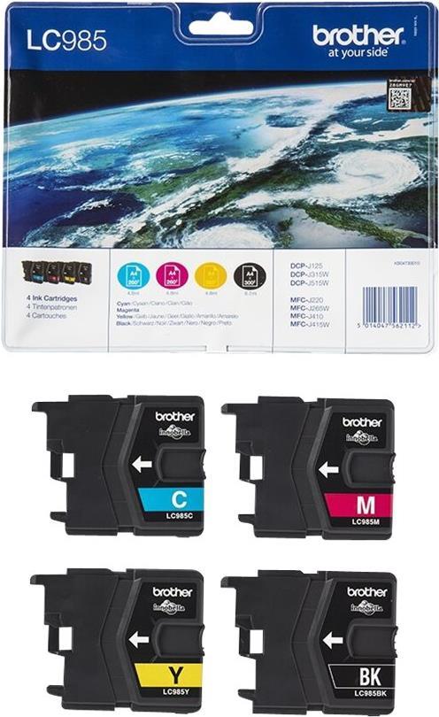 | Produktbeschreibung | Brother LC985VALBP - 4er-Pack - Schwarz, Gelb, Cyan, Magenta - original - Tintenpatrone |