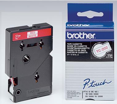 Brother - Druckerband - weiß, Rot - Rolle (1,2 cm x 7,7 m) - 1 Stck. - für P-Touch PT-15, PT-20, PT-2000, PT-3000, PT-500, PT-5000, PT-6, PT-8, PT-8E (TC202)