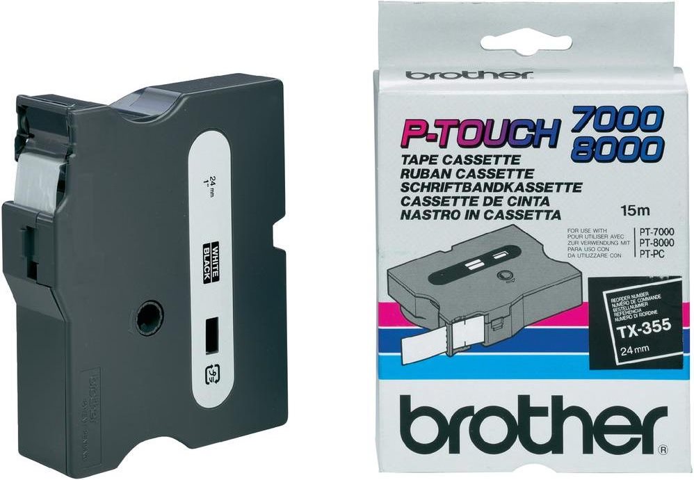 Brother TX - Laminiertes Band - Weiß auf Schwarz - Rolle (2,4 cm) - 1 Rolle(n) (TX-355)