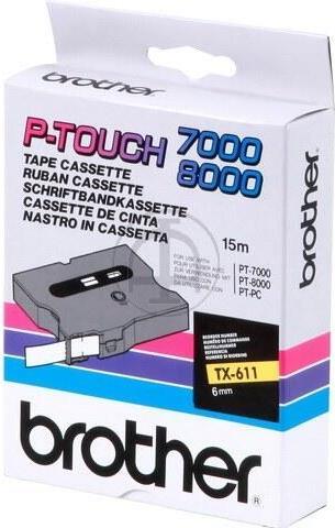 Brother TX611 - Schwarz auf Gelb - Rolle (0,6 cm x 15,2 m) 1 Kassette(n) laminiertes Band - für P-Touch PT-7000, PT-8000, PT-PC (TX-611)