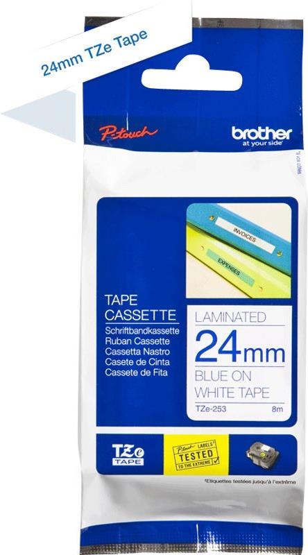 Brother TZe 253 - Laminiertes Band - blau auf weiß - Rolle (2,4 cm x 8 m) - 1 Rolle(n) - für P-Touch PT-2420, 2430, 2460, 2470, 2480, 2700, 2730, 3600, 7500, 7600, 9500, 9700, 9800 (TZE253)