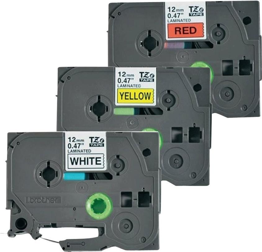 | Im Lieferumfang enthaltene Medien | Laminiertes Band - Rolle (1,2 cm x 8 m) - Schwarz auf Gelb - 1 Laminiertes Band - Rolle (1,2 cm x 8 m) - Schwarz auf Weiß - 1 Laminiertes Band - Rolle (1,2 cm x 8 m) - schwarz auf rot - 1 |